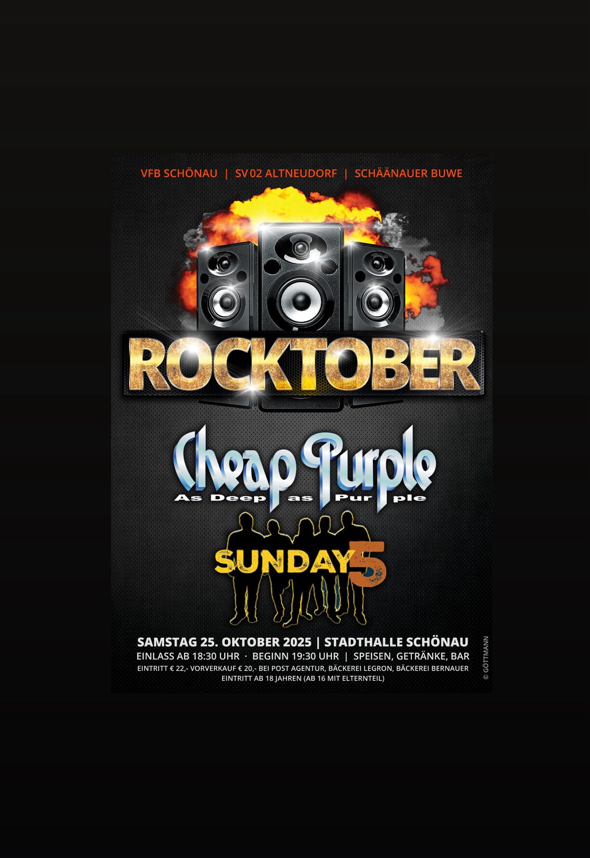 Beim SV02 Altneudorf dürfen wir den 25. Rocktober mit bestreiten. Mit am Start ist die Band Sunday5.